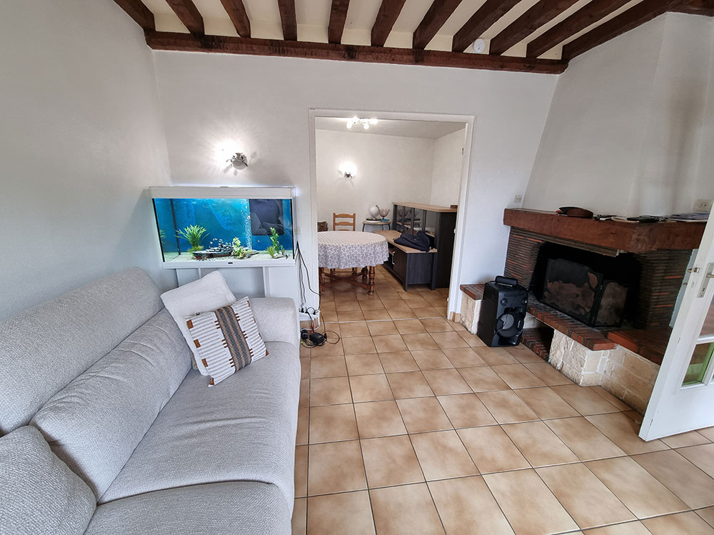 - RC : cuisine, séjour avec cheminée, salon, wc, salle de bains, dégagement, une pièce,
