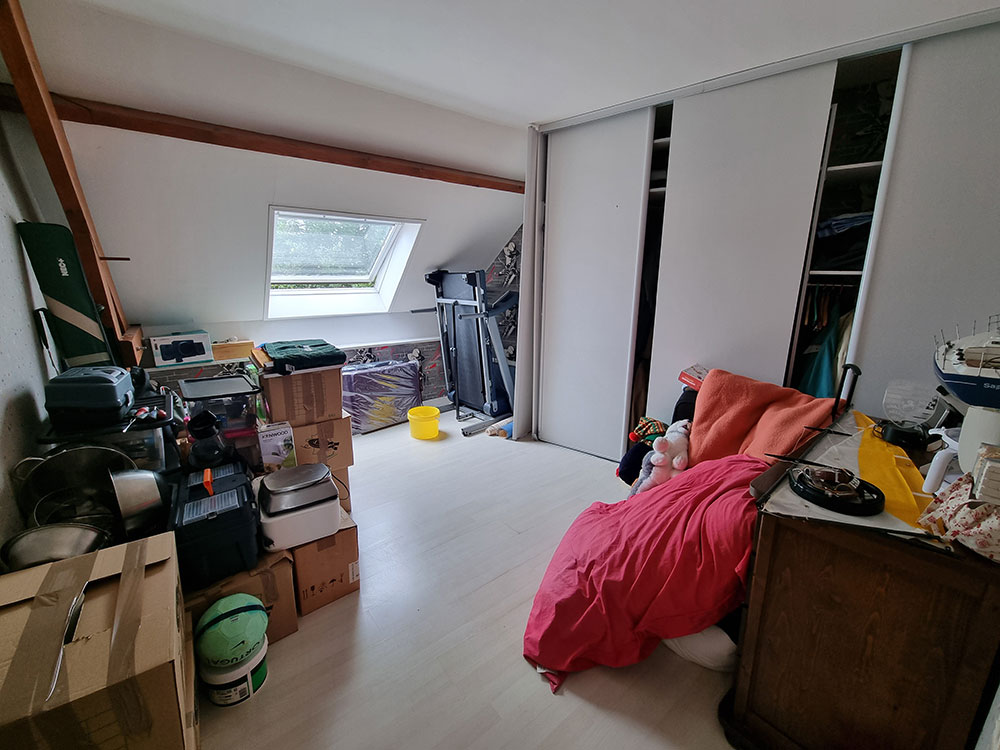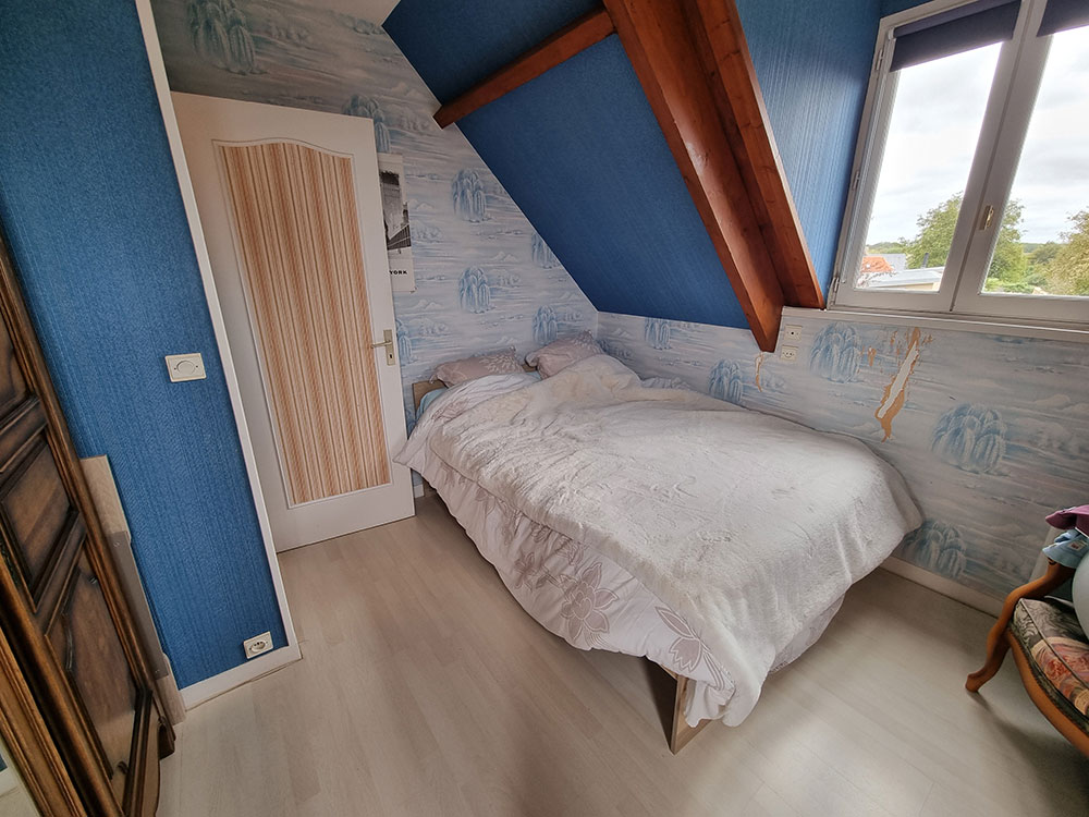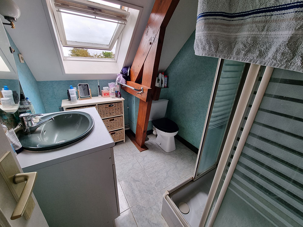 - Étage : dégagement, une pièce, salle d’eau avec wc, trois chambres, grenier.